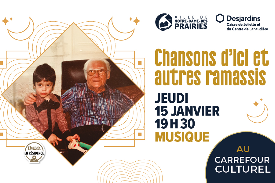 Venez découvrir ce projet passionnant dédié à revitaliser des chansons précieuses qui risquent de sombrer dans l’oubli. Wellie Lepage, l’arrière-grand-père de l’artiste, a laissé derrière lui un trésor musical d’une valeur inestimable. Ses chansons racontent des histoires d’un temps révolu, mais toujours pertinent. André Gagné considère qu’il est de son devoir de préserver ce patrimoine et de le partager. Le musicien présente également d’autres chansons qu’il a collectées au fil de sa carrière. Plus qu’un simple spectacle, Chansons d’ici et autres ramassis, c’est un voyage à travers le temps et les émotions, une célébration de la mémoire musicale !