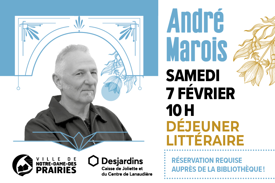 Formule café-viennoiseries. Réservation requise auprès de la bibliothèque : biblio@notredamedesprairies.com ou 450 758-3670.